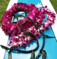 Bodacious purple orchids are known for their longevity and exotic flair. Also known as a Triple Orchid lei since the orchids are so bodacious.